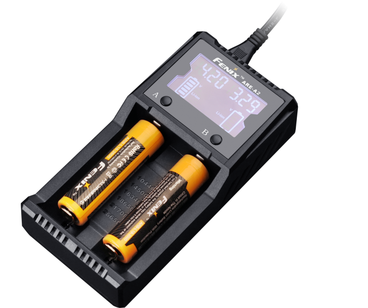 Нужный режим работы Fenix ARE-A2 подбирает самостоятельно в автоматическом режиме. На специально встроенном дисплее пользователь видит всю актуальную информацию о своих элементах питания: текущий уровень заряда, время зарядки, напряжение и тип аккумулятора.