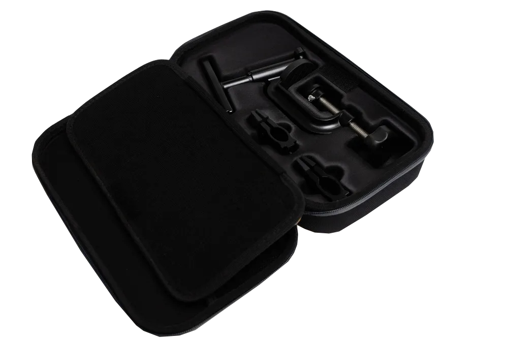 Обновлённая версия заточного станка получила жёсткий кейс (гофр) с индивидуальными ячейками для хранения основных (крупных) деталей станка, откидной органайзер для алмазных брусков и мелких комплектующих, а так же сетка-отделение для дополнительных аксессуаров.