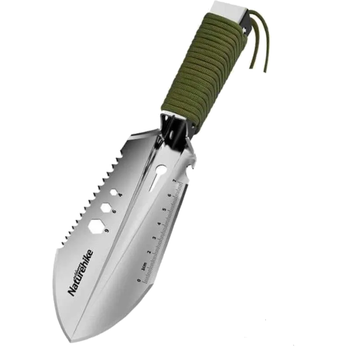 Лопата выполняет функции гвоздодёра, гаечного ключа и линейки, что делает её универсальным помощником в походе. Её можно использовать для копки, подрезки веток или мелких ремонтных работ. Для удобства предусмотрена возможность крепления деревянной палки в качестве удлинителя рукояти.