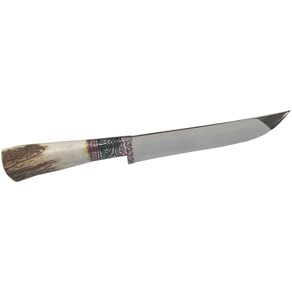 Рукоять выполнена из натурального рога, что придаёт ножу прочность, долговечность и неповторимый внешний вид. Материал не только устойчив к износу, но и обеспечивает удобный хват, позволяя работать долго без усталости.