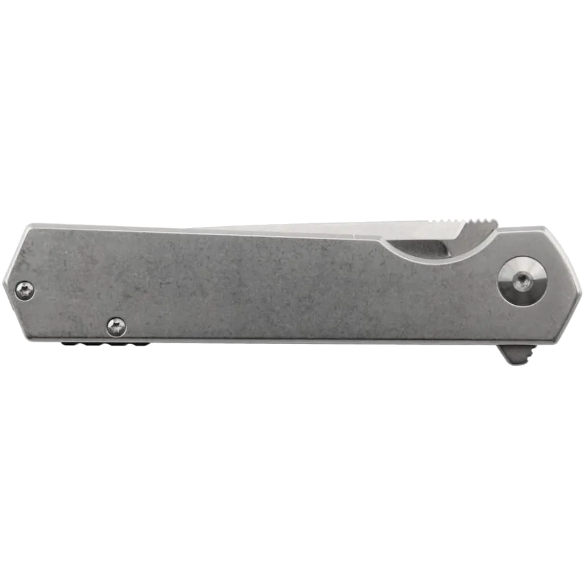 Лезвие изготовлено из полунержавеющей стали D2 с твердостью около 60 HRC, устойчивая к износу и долго сохраняющая остроту. Поверхность клинка обработана методом Stone Washed, что делает его матовым и менее подверженным царапинам. Гладкая заточка и прочная режущая кромка позволяют использовать нож для широкого круга задач.