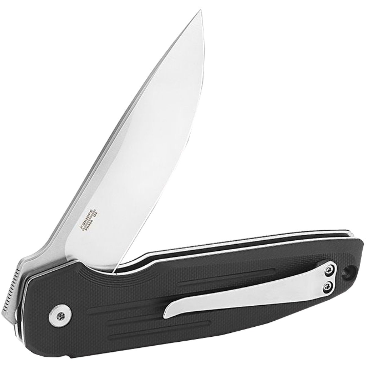 Клинок из стали D2 (твёрдость \~60 HRC) сохраняет остроту, устойчив к ржавчине и механическим нагрузкам. Рукоятка из G10 с текстурой не скользит, не впитывает влагу и устойчива к деформации. Выемка в основании защищает пальцы при работе с усилием.