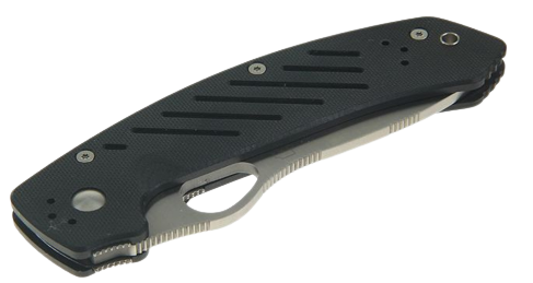 Клинок выполнен из ламинированной стали AUS-8. Прочность этой модели сопоставима с прочностью более дорогих аналогов. Пропилы на плашках рукояти не дают задерживаться влаге. Нож легко чистить и мыть в походных условиях. Нож оснащен отверстием под темляк или подвес. Для моментального открывания используется отверстие на клинке. Это бывает удобно, когда занята вторая рука.