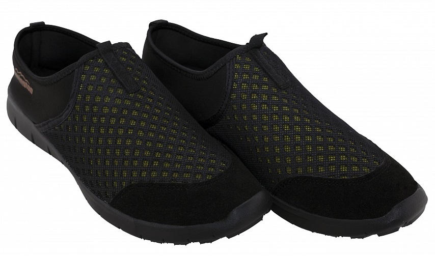 Подошва выполнена из EVA обладает малым весом и отличной амортизацией позволяющей снижать нагрузку при ходьбе. Любители рыбалки могут использовать их в воде, не боясь повредить ноги.