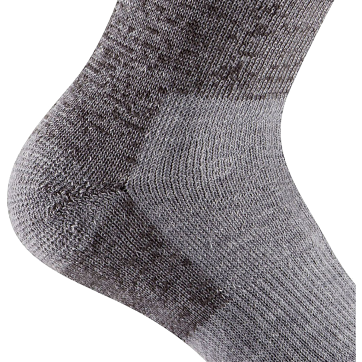 Конструктивные решения также направлены на максимальный комфорт. Эластичная вставка Elastic Fitting Band фиксирует носок на стопе, предотвращая его смещение, и улучшает отвод влаги. Манжета Elastic Grip Skin надёжно удерживает носок без чрезмерного давления, поддерживая нормальное кровообращение. Плоские швы Flat Junction® исключают натирание, обеспечивая удобство даже при длительном ношении. Эта модель станет оптимальным дополнением к треккинговой обуви, сочетая тепло, защиту и долговечность.