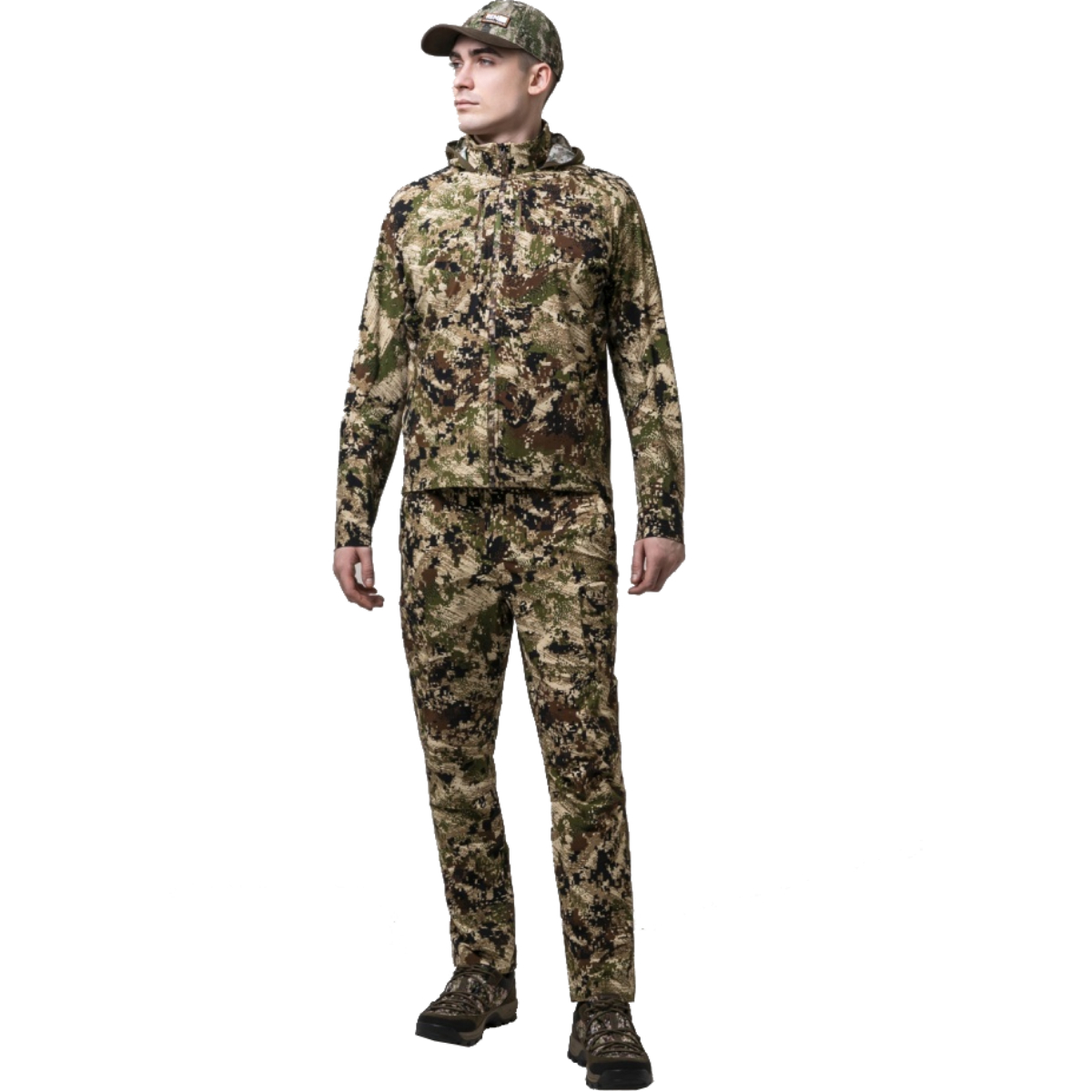 Для вентиляции в подмышечной зоне использована сетчатая ткань с двух сторон. Брюки с анатомическим кроем и регулировками по объему удобно сидят и не стесняют движений. На коленях расположены карманы для защитных вставок, повышающие практичность костюма в полевых условиях.