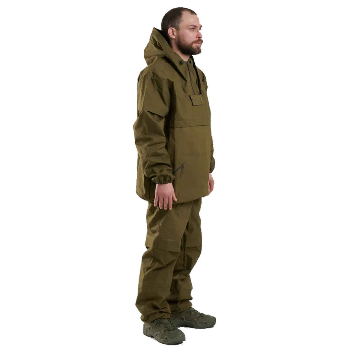 Основной материал — твил, который сочетает в себе множество преимуществ. Благодаря высокому содержанию хлопка, ткань хорошо пропускает воздух и приятна на ощупь. Синтетические волокна добавляют материалу износостойкости и облегчают уход за ним. Костюм также оснащен антимоскитной сеткой, которую можно легко спрятать в специальный нагрудный карман. На куртке и брюках расположены ловушки для клещей, выполненные из яркой ткани для удобства обнаружения.