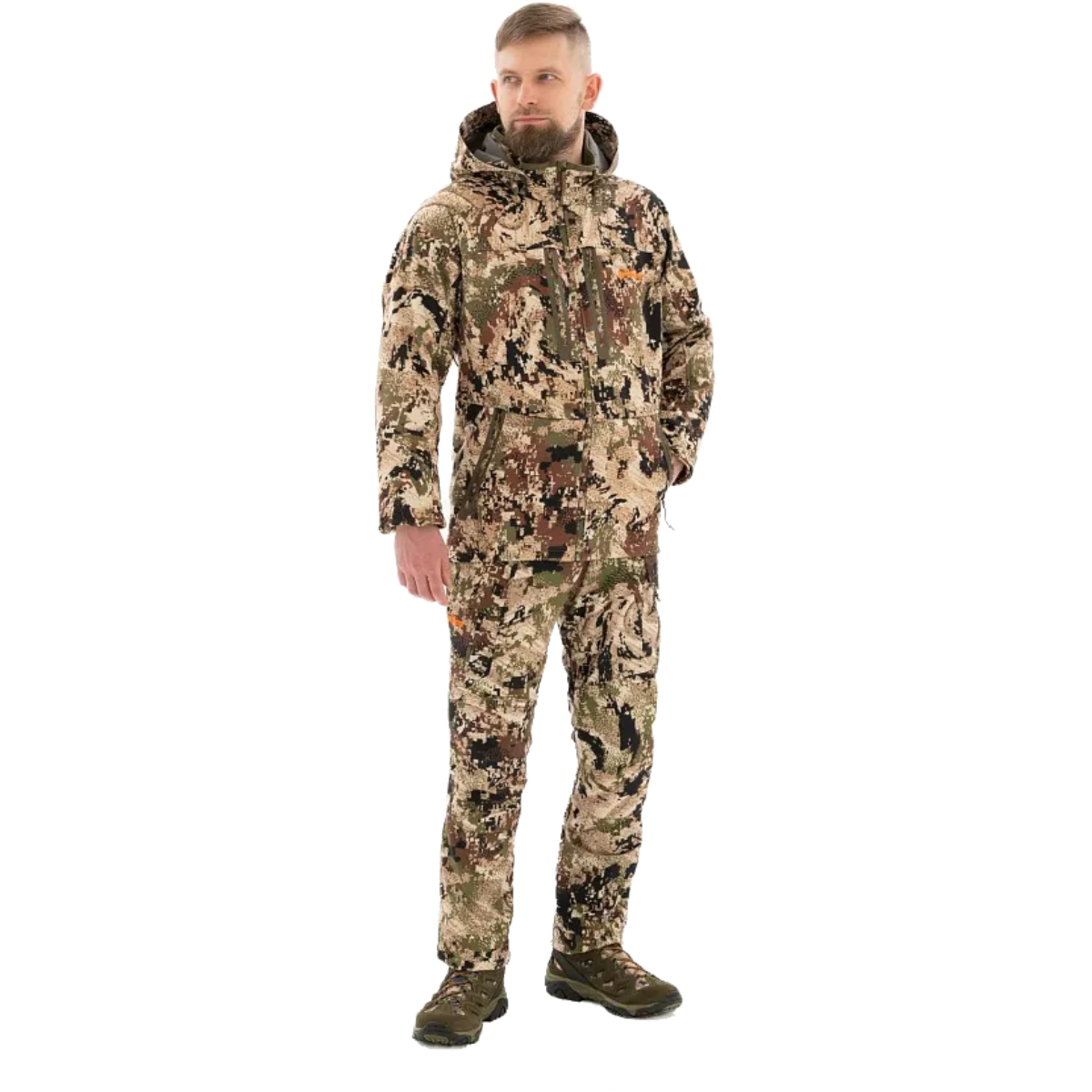 Мембрана Climatic Pro с паропроницаемостью 8000 г/м²/24 ч и водонепроницаемостью 10 000 мм обеспечивает надёжную защиту от влаги и сохранение комфорта. Цвет South Forest сочетает зелёные и коричневые оттенки, помогая маскироваться среди деревьев и растительности. Температурный диапазон эксплуатации — от +5 до +15 °C. Всего костюм имеет 10 карманов: 4 в куртке и 6 в брюках.