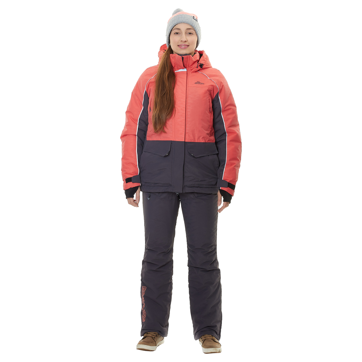 Эстетичный дизайн с фирменным принтом «волны» и женственные цветовые сочетания придают костюму стильный вид, что оценят любительницы зимней рыбалки.