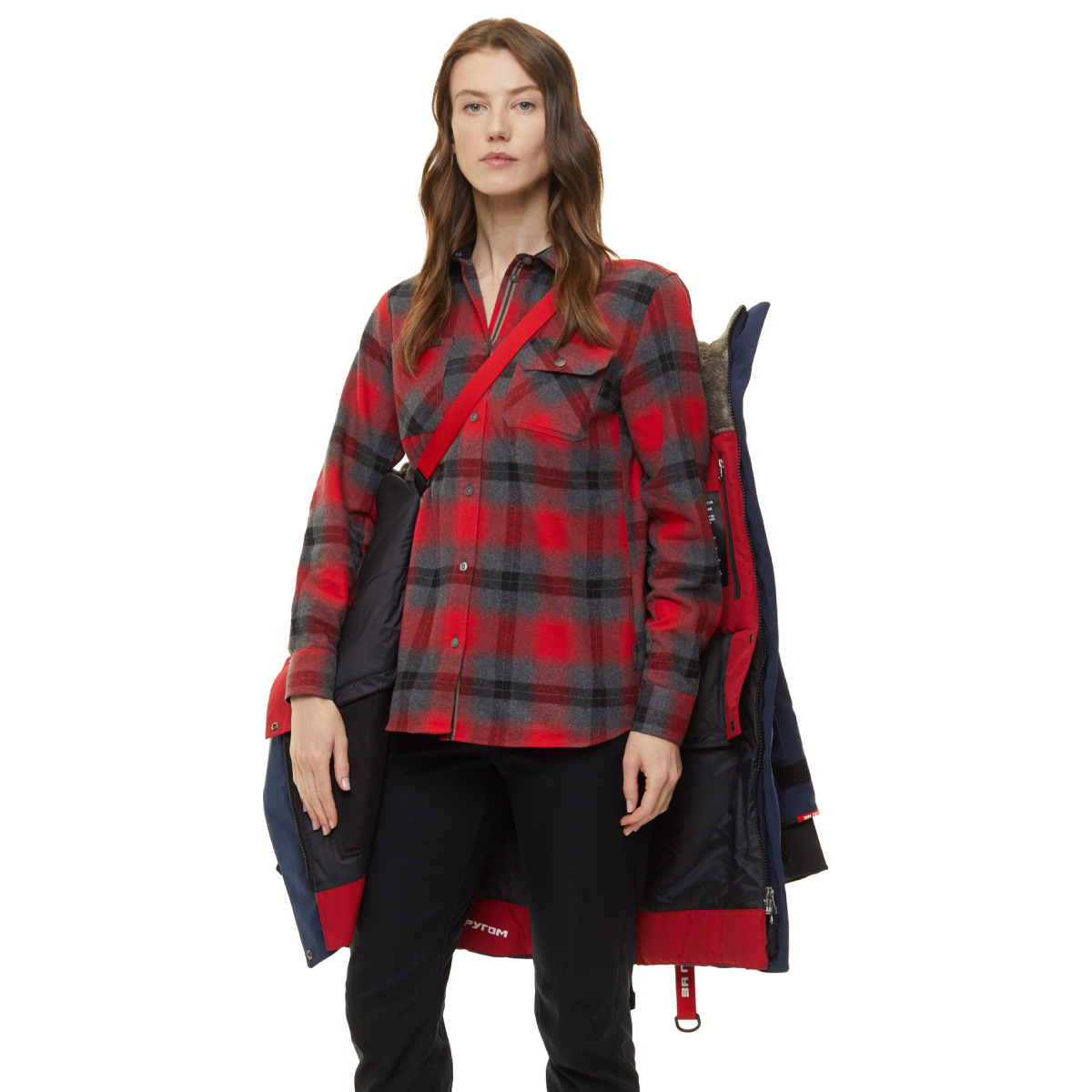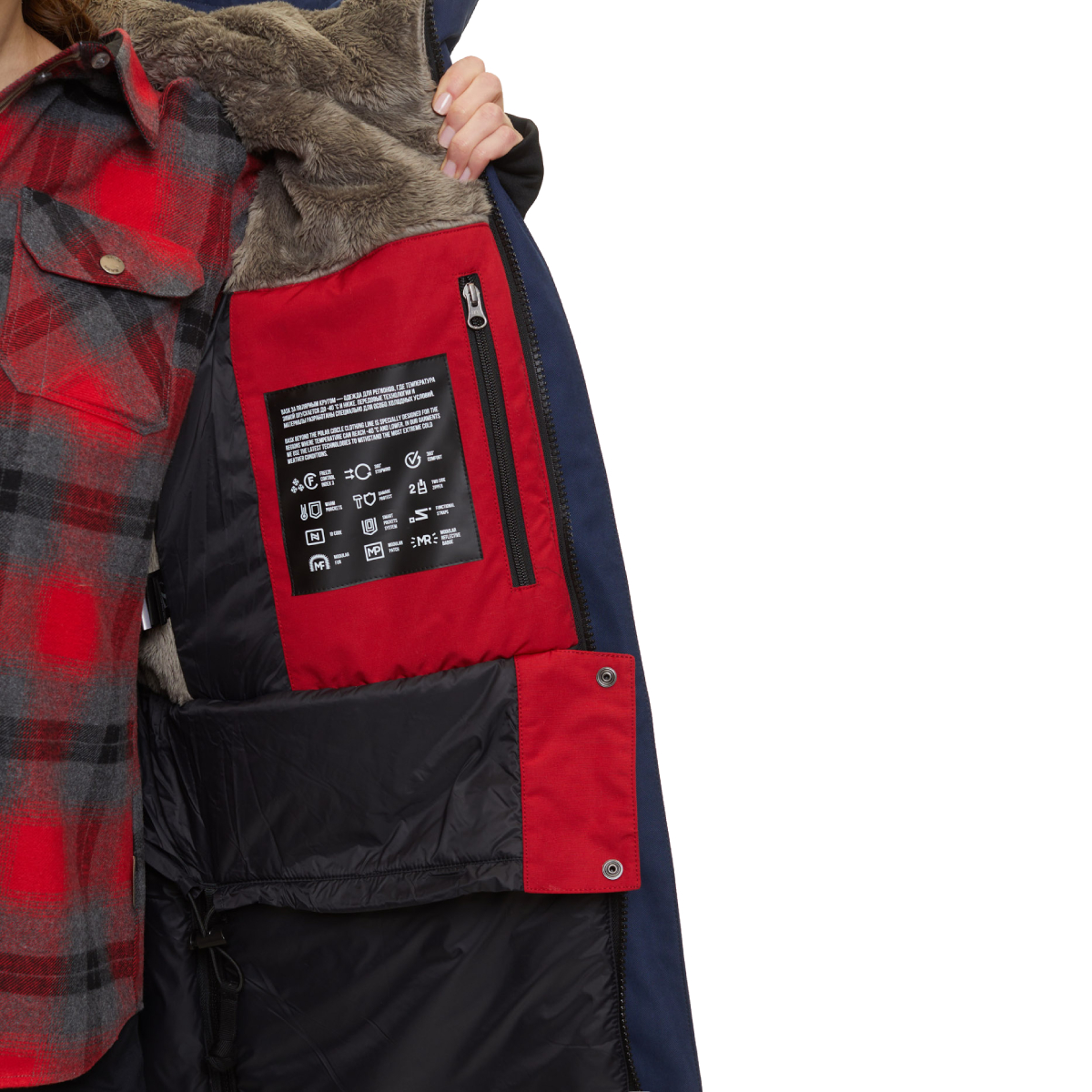 Парк оснащена утепленным регулируемым капюшоном и манжетами с Velcro®. Внутренние манжеты имеют отверстие для пальца. Ветрозащитные планки на молнии обеспечивают дополнительную защиту от холода. Куртка имеет два нагрудных кармана, два нижних под клапанами, теплый карман под планками, а также внутренний карман на молнии и из сетки.