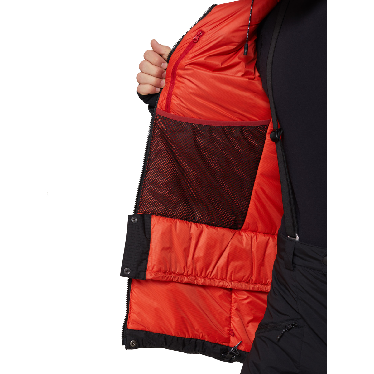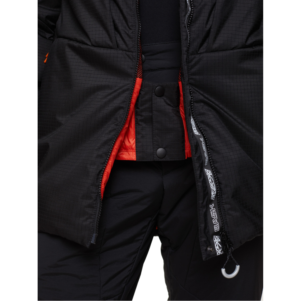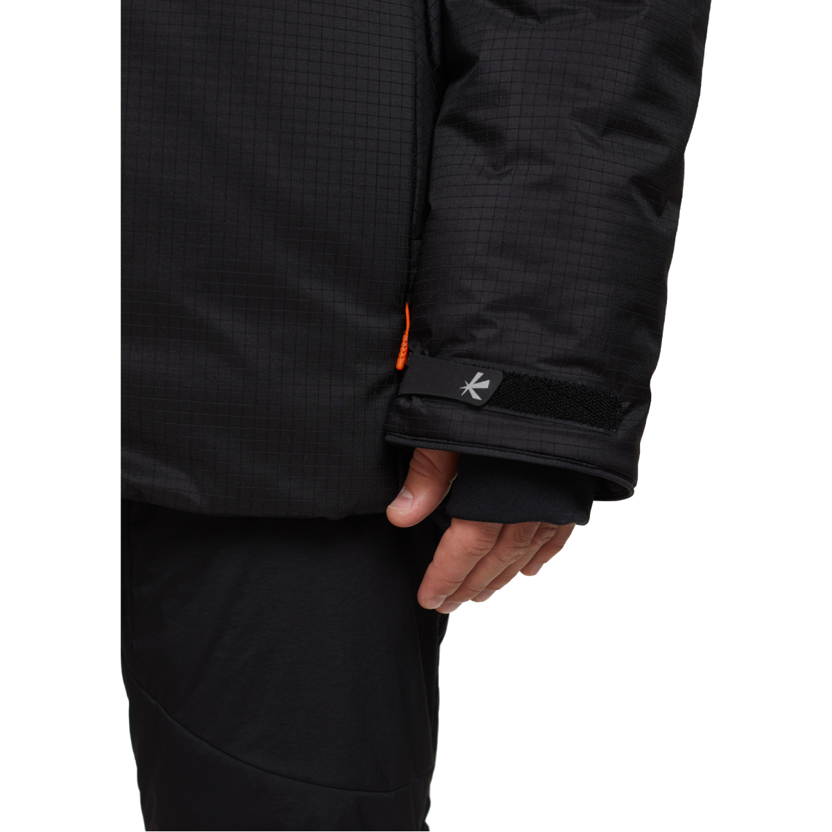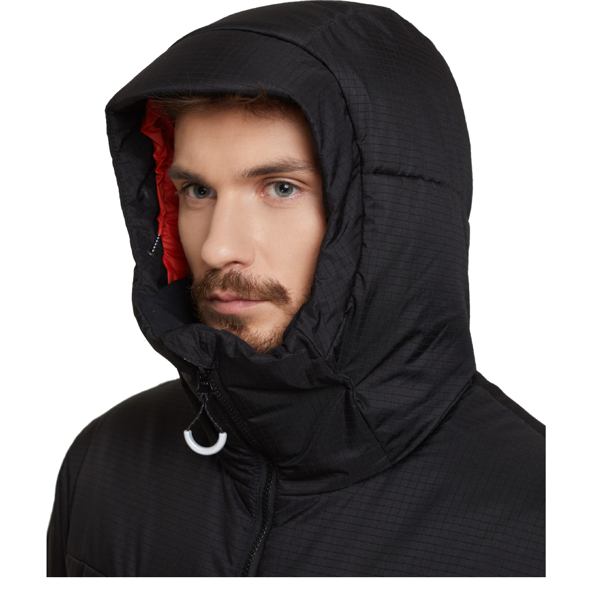 Куртка оснащена объёмным капюшоном с высокой стойкой и эластичными регулировками, который можно надевать поверх каски или тёплой шапки. Центральная молния с двумя замками позволяет расстёгивать куртку сверху и снизу, а регулируемые манжеты на липучке Velcro® и внутренние эластичные манжеты из Advance® T Stretch с отверстием для большого пальца обеспечивают дополнительную теплоизоляцию.