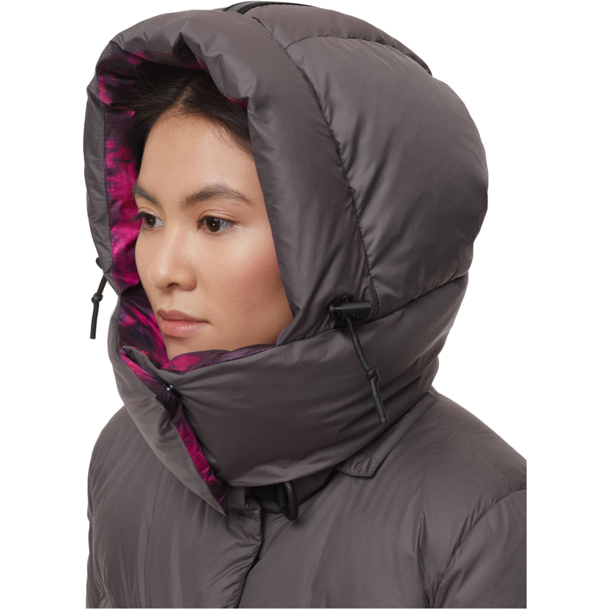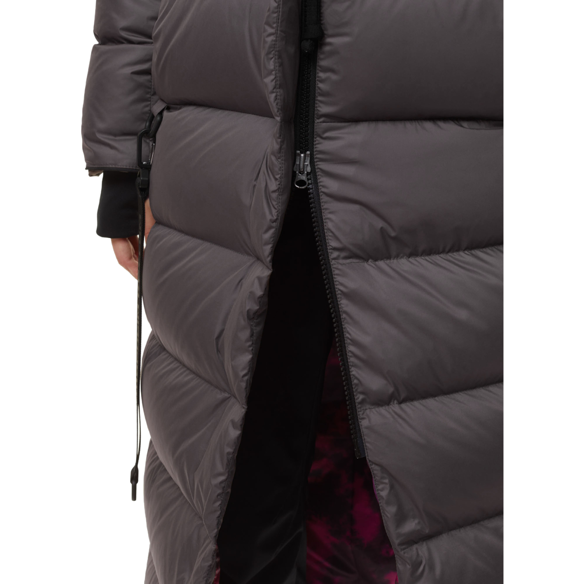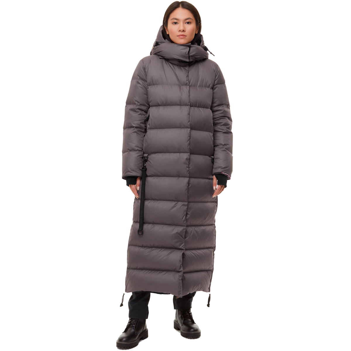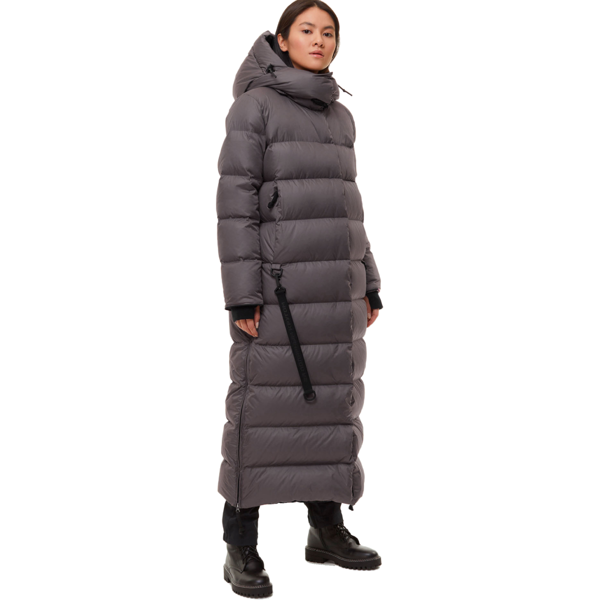 Модель отличается функциональностью и удобством в эксплуатации. Высокие боковые разрезы на молниях позволяют быстро получить доступ к карманам брюк или юбки, съемный и регулируемый капюшон обеспечивает надежную защиту головы, а наличие нескольких внешних и внутренних карманов позволяет удобно размещать необходимые вещи. Снегозащитная юбка и съемная лямка для переноски пальто за плечами делают использование модели максимально комфортным даже в суровых условиях.