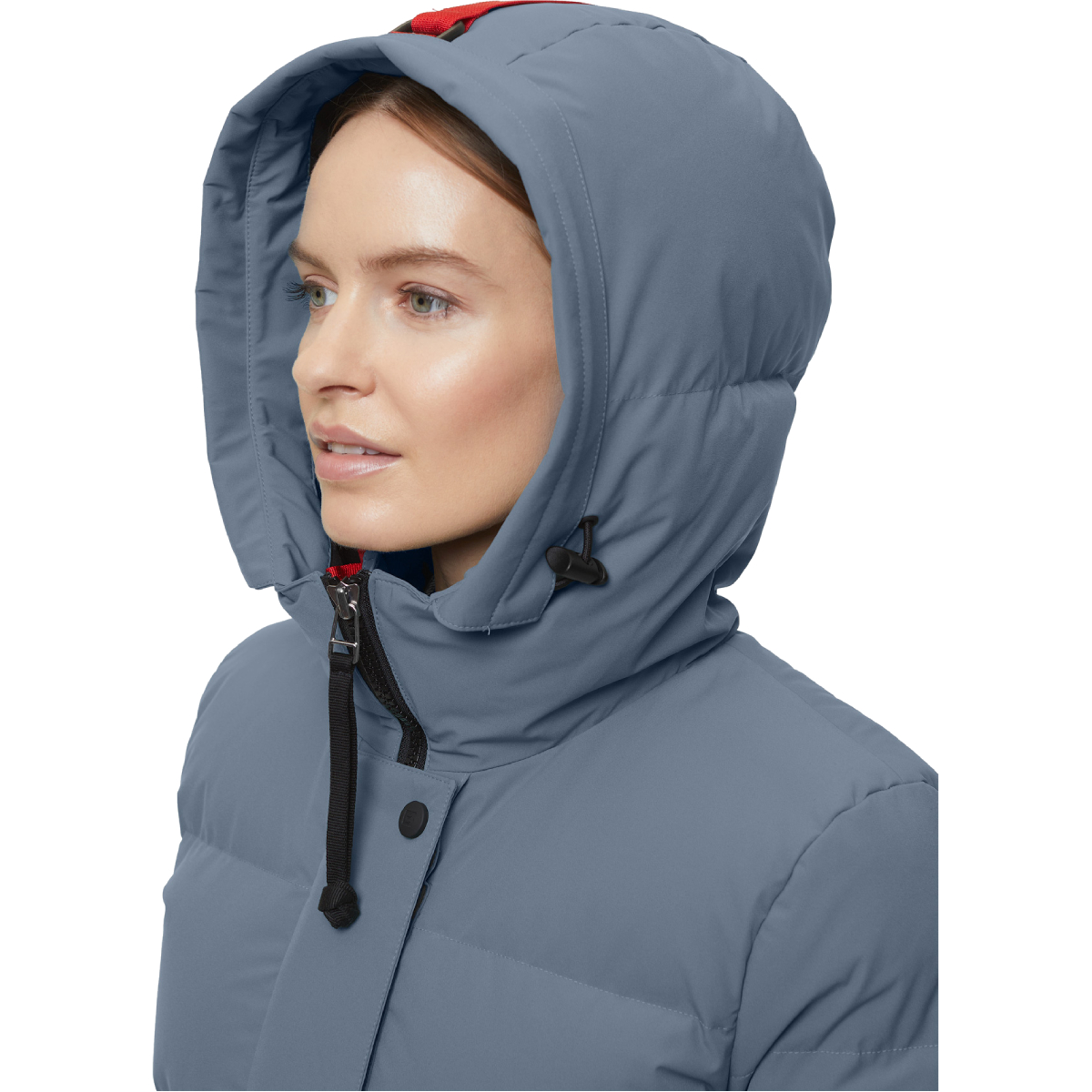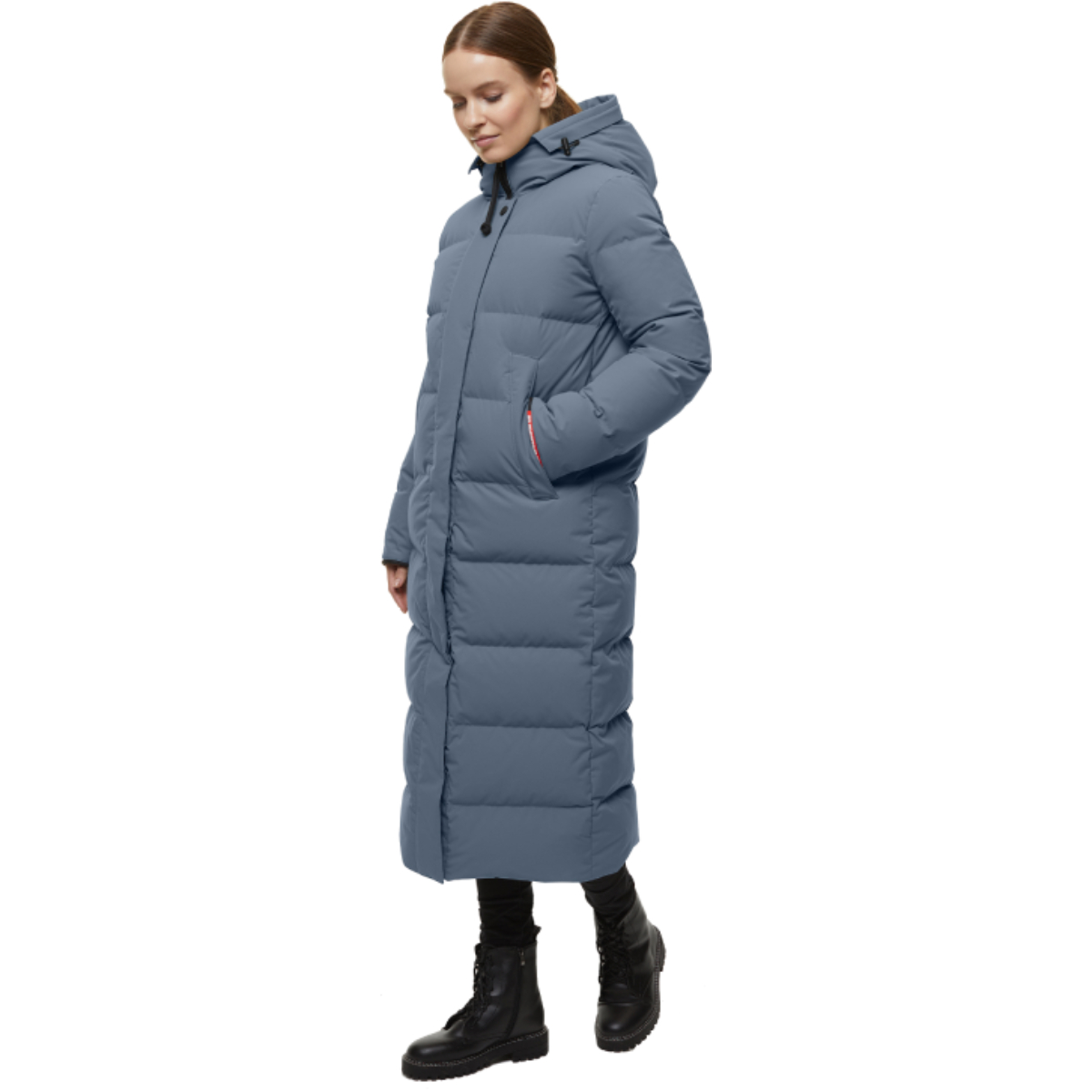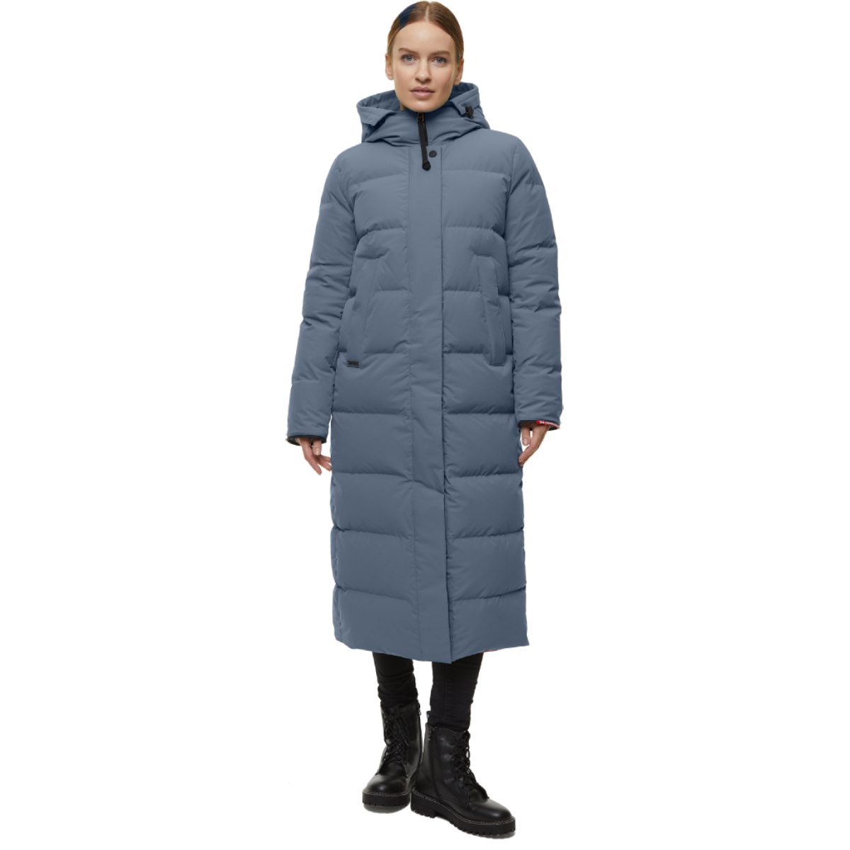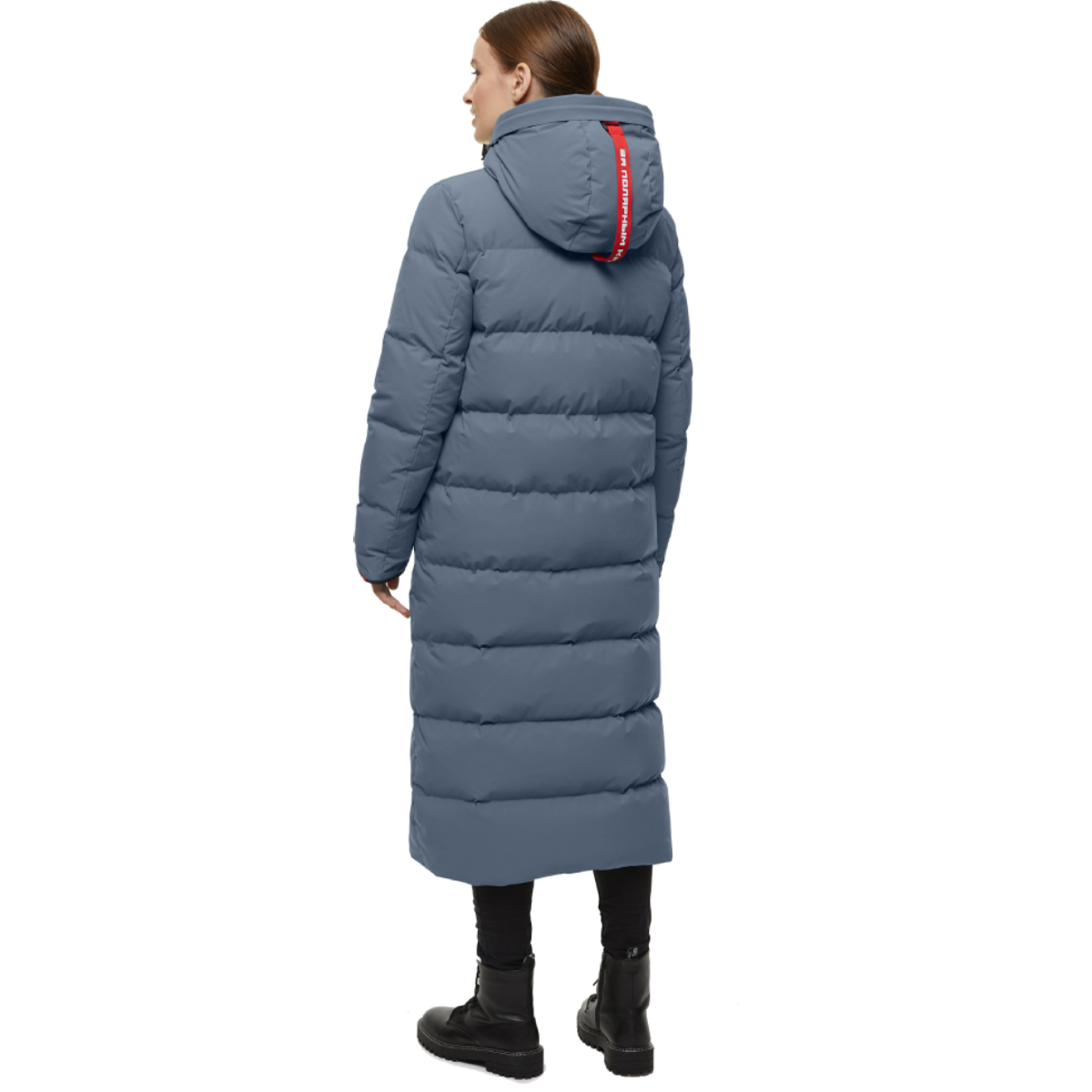 Объемный регулируемый капюшон с ветрозащитным тубусом можно дополнительно оснастить съемной опушкой (приобретается отдельно), а съемная внутренняя лямка позволяет переносить пальто за плечами. Для удобства предусмотрены два теплых боковых кармана на молнии под планками, а также два внутренних кармана — один на молнии и один из 3D сетки для хранения устройств. Светоотражающая стропа на капюшоне повышает видимость в темное время суток.