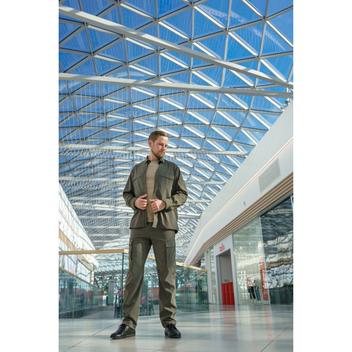 Три функциональных кармана предлагают удобное хранение, а канадская система пришивания пуговиц добавляет надежности.