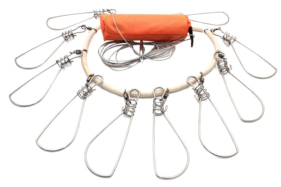 Надежные застежки на кукане предотвращают сорв рыбы и обеспечивают безопасную перевозку. Проволока, из которой изготовлен кукан, не боится укусов щучьих зубов, что делает его долговечным и надежным аксессуаром. Карабины на кукане закреплены при помощи вертлюгов на определенном расстоянии, что обеспечивает удобство в использовании. Силиконовые трубочки используются в качестве разграничителей, чтобы сохранить трофеи в хорошем состоянии во время перевозки. Кукан крепится к лодке (или к колышкам) с помощью надежных карабинов, обеспечивая надежную фиксацию.