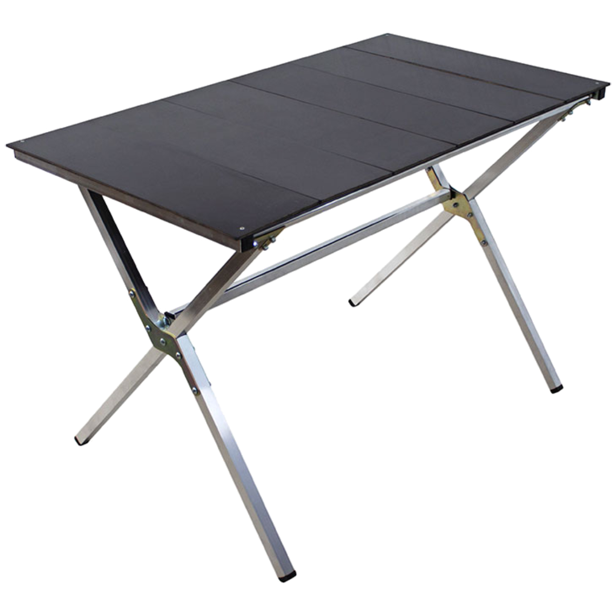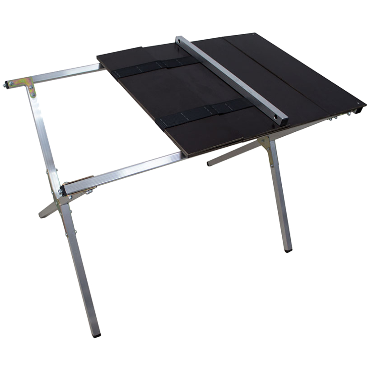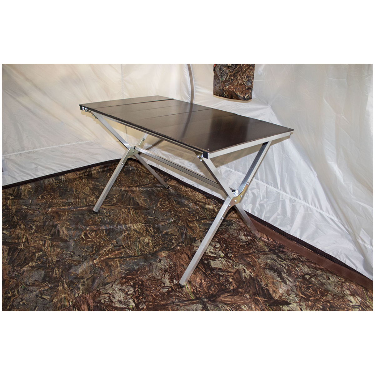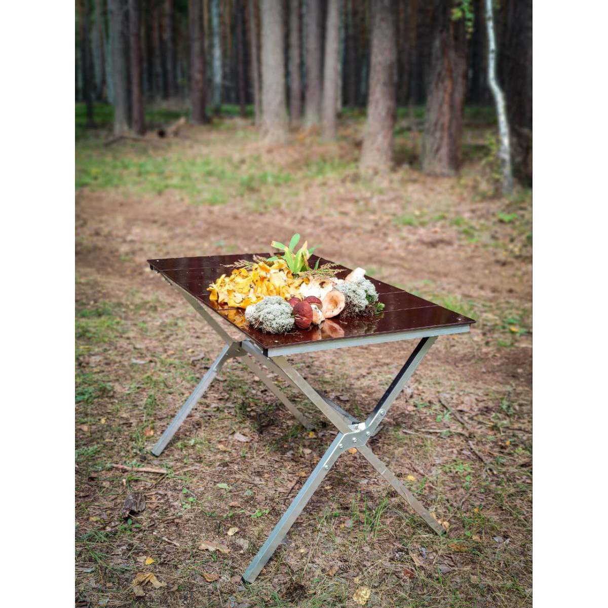 Столешница выполнена из ламинированной фанеры толщиной 6 мм. Каркас изготовлен из профильной алюминиевой трубы с сечением 25x25 мм и толщиной стенки 1,5 мм. Соединительные шарниры сделаны из нержавеющей стали толщиной 3 мм.