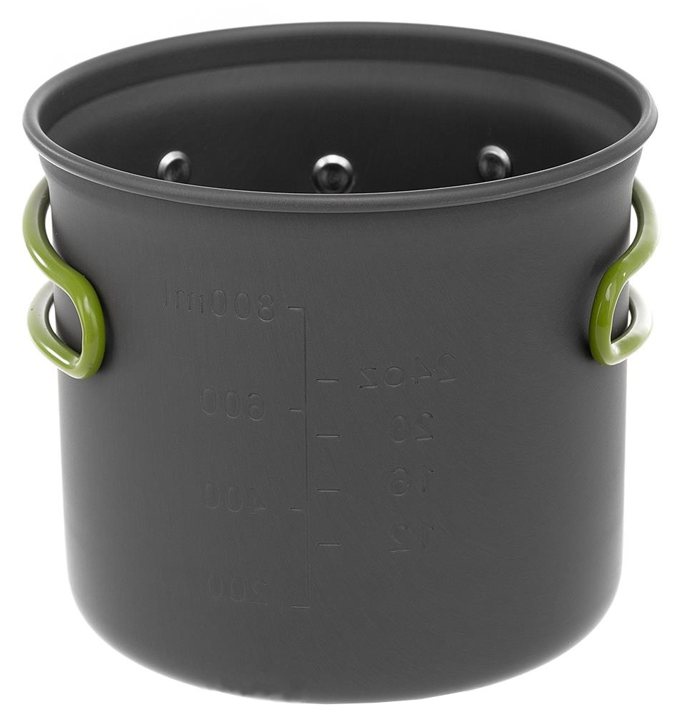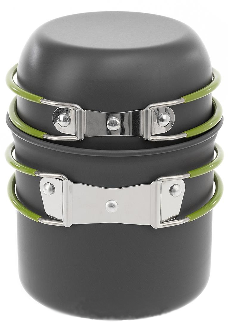 Набор рассчитан на 1-2 человека. Имеет откидные ручки с термоизолирующим покрытием, которые экономят объем при транспортировке, делая использование посуды более комфортным. Набор поставляется с нейлоновым мешочком для транспортировки и хранения.