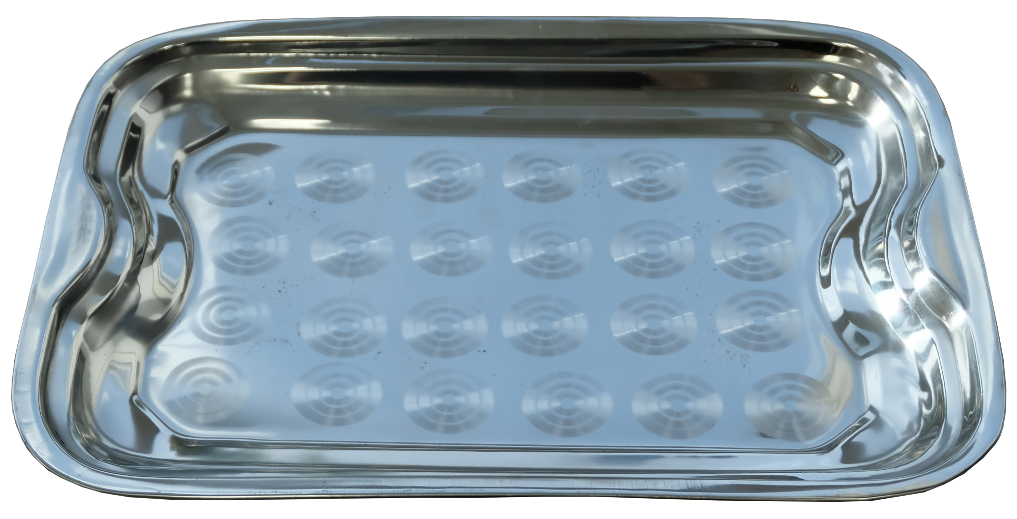 Гладкая поверхность легко чистится и устойчива к коррозии, что обеспечивает сохранение внешнего вида подноса на долгие годы.